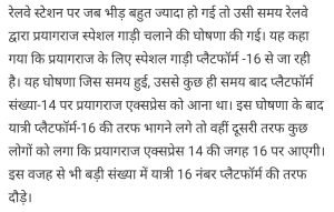 18 लोगों की गई जान रेलवे स्टेशन दिल्ली में मची भगदड़ ने मचाया कोहराम।AuthorPosted byMontfortnewsindiaPublishedFebruary 17, 202510:43 amUpdated10:45 amX (Twitter)FacebookLinkedInShare this postShare this postClose sharing box18 लोगों की गई जान रेलवे स्टेशन दिल्ली में मची भगदड़ ने मचाया कोहराम।X (Twitter)FacebookLinkedInTelegramPosted by Montfortnewsindia on February 17, 2025. Updated: 10:45 am